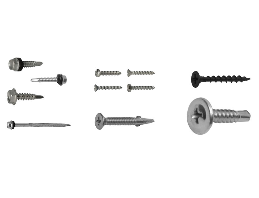 Tornillos autoperforantes cabeza hexagonal tipo 1, tipo 2, punta mecha, punta aguja, con arandela vulcanizada, drywall, wafer y Parker.